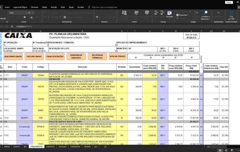 Como parte do escopo, são elaborados memoriais descritivos, especificações técnicas, desenhos executivos e planilhas orçamentárias, compatíveis com os padrões adotados em obras públicas. A documentação técnica é apresentada de forma clara e completa, facilitando os processos de licitação, execução e fiscalização das obras de drenagem.