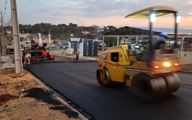 Elaboração de projetos completos de pavimentação urbana e rural, incluindo definição geométrica, dimensionamento estrutural do pavimento, detalhes construtivos, memoriais descritivos e planilhas orçamentárias.